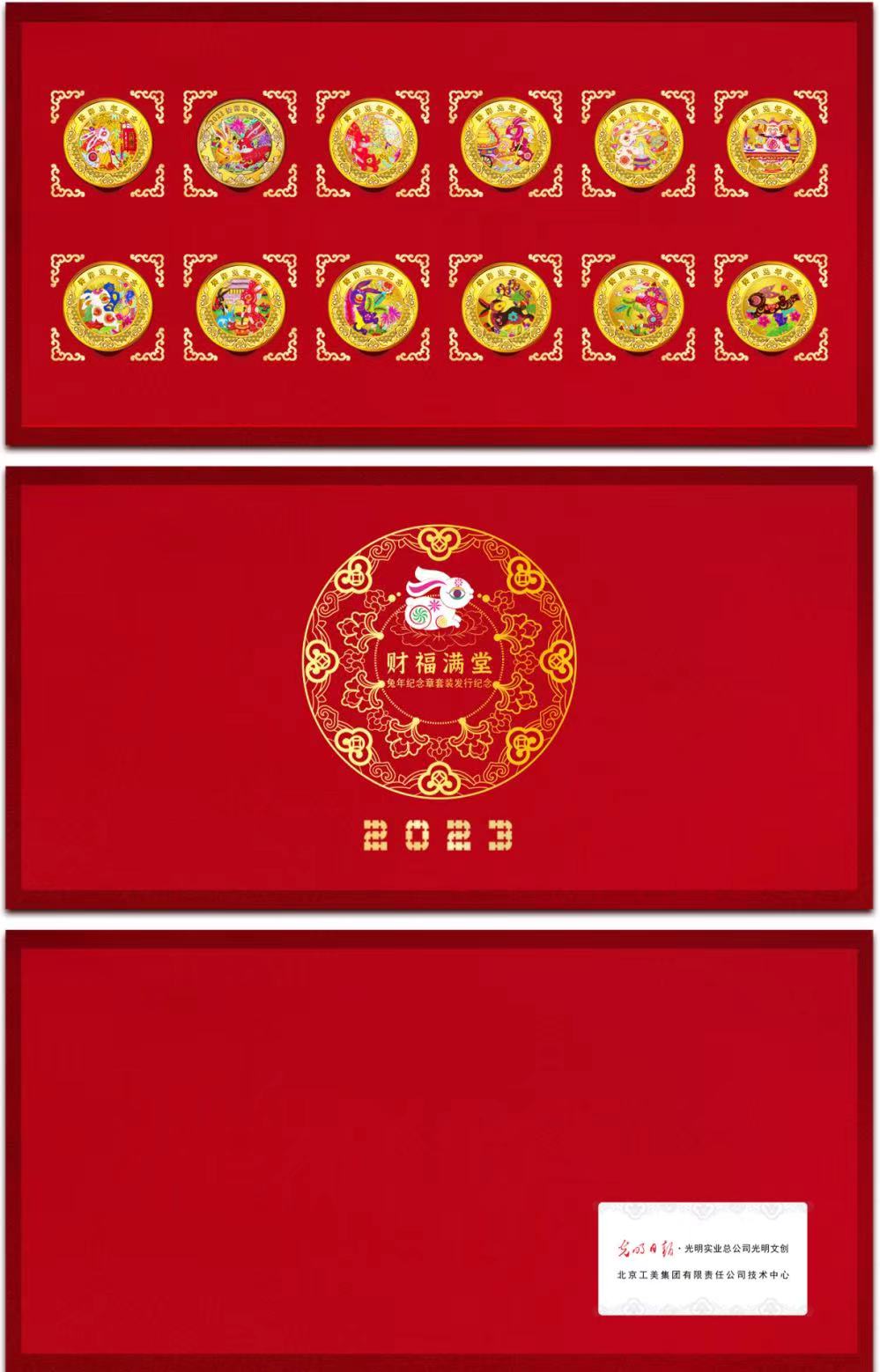 With the advent of the New Year of 2023, Guangming Culture and Innovation (GM Choice) and Technology Center of Beijing Gongmei Group Co., Ltd., jointly created a set of commemorative medallions for the Chinese zodiac Year of the Rabbit, “Treasure House of Happiness and Fortune” with intangible cultural heritage elements. They are now officially released to the public.