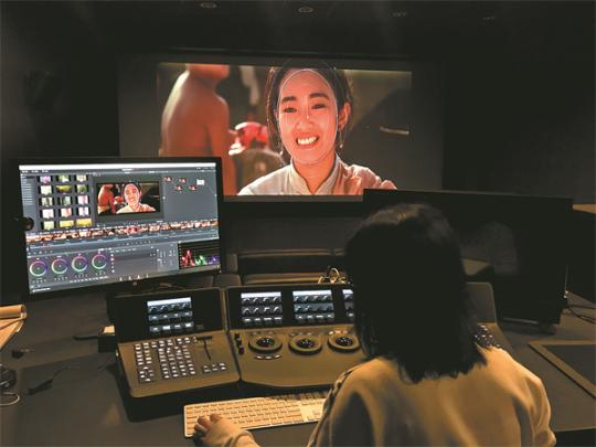A restorer at the China Film Archive works on footage of actress Gong Li's 1988 classic Red Sorghum.(Photo/Courtesy of the China Film Archive)