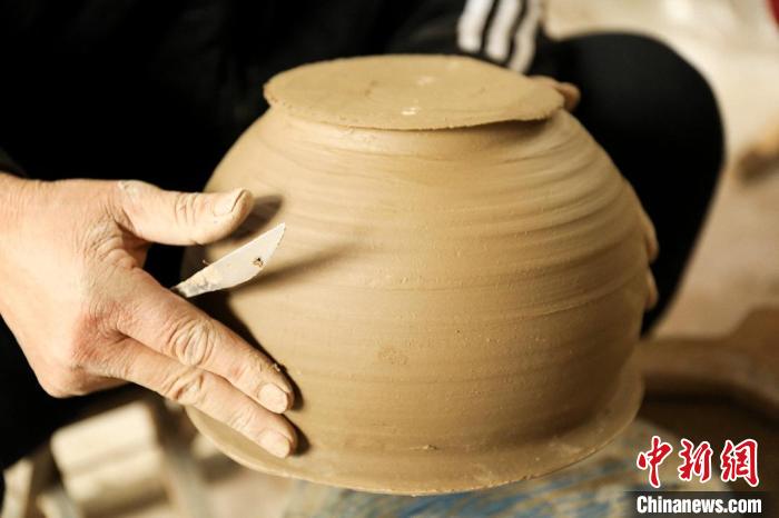 A craftsman makes a pottery product. (Photo/Gao Wei)
