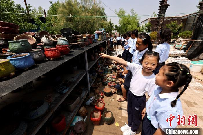 Students learn about pottery ware. (Photo/Sun Zhongzhe)