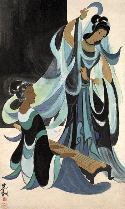While some of the artist's watercolors reflect the influence of contemporary European masters, such as Matisse and Cezanne, his portraits of ancient Chinese women, landscape paintings with birds, and country life scenes, display a harmonious combination between Chinese philosophy and Western art.