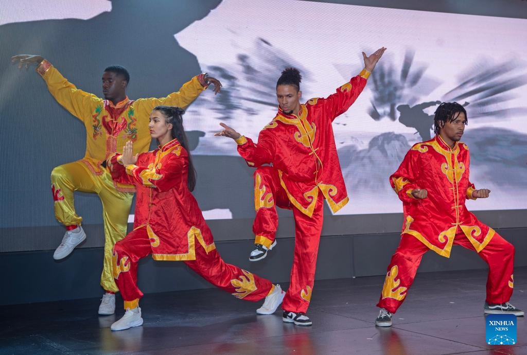 Dancers studying at the University of Namibia perform at the "Happy Spring Festival" party in Windhoek, Namibia, on Jan. 20, 2024. (Photo by Musa Kaseke/Xinhua)