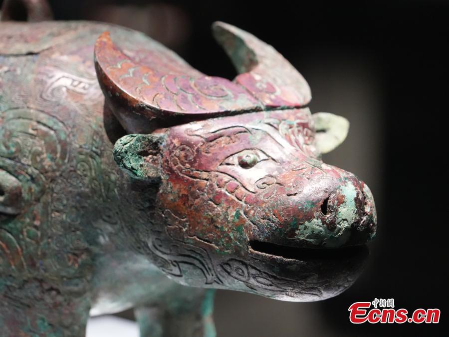 An artifact featuring an animal is displayed at the new Yinxu Museum in Anyang, central China's Henan Province, Feb. 25, 2024. (Photo: China News Service/Kan Li)