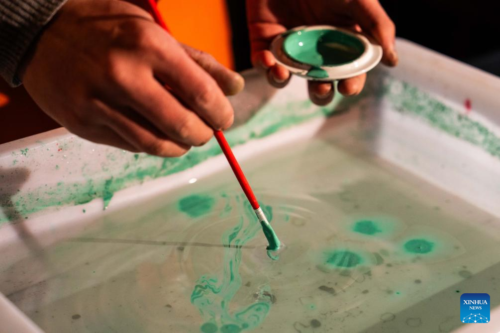 Hao Guanxiong makes lacquer coated fan at his studio in Changsha, central China's Hunan Province, Feb. 28. 2024. (Xinhua/Chen Sihan)