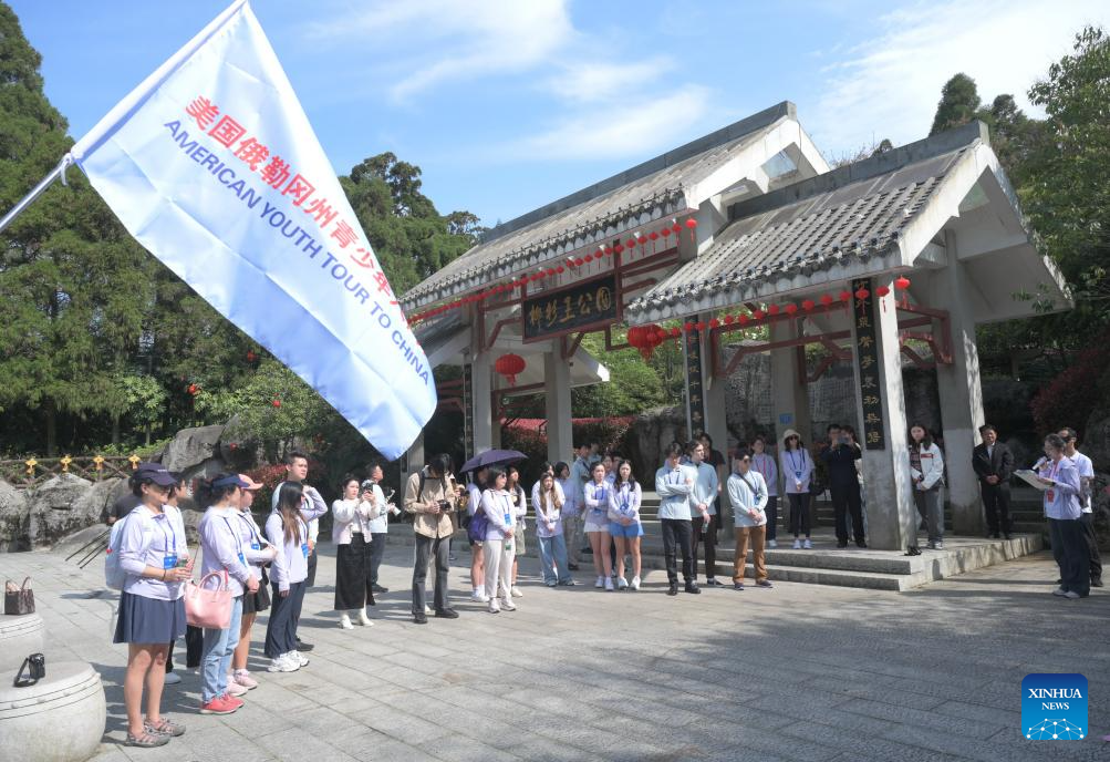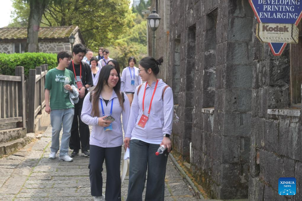 Students from the United States and Fuzhou University visit a historical public service community in Kuliang, Fuzhou, southeast China's Fujian Province, March 25, 2024. Students from the United States and Fuzhou University participated in a tour and communication event here on Monday. During the event, students from the two countries visited historical landmarks in Kuliang and learned about the history of China-U.S. exchanges.