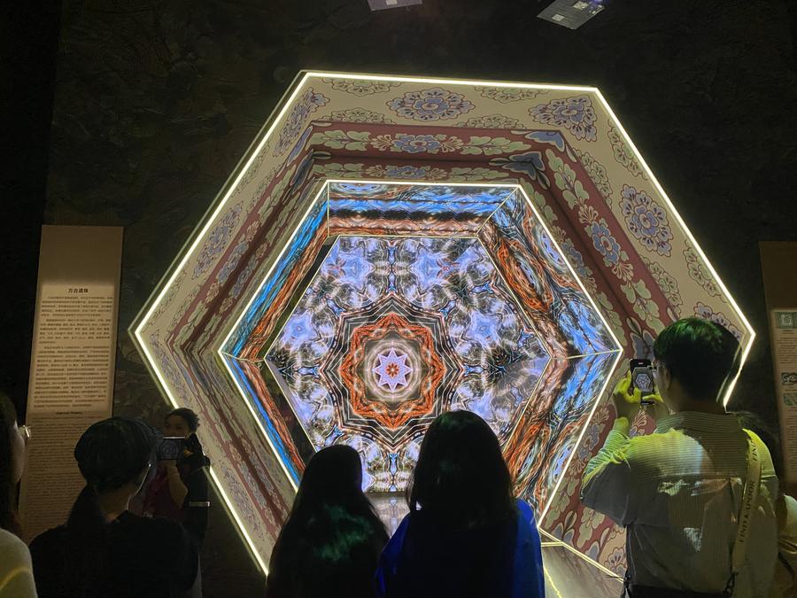 The exhibition uses giant installations, artificial intelligence (AI) algorithms, digital interactive applications and other technology to bring together cultural treasures such as Mogao Caves, Maiji Mountain Grottoes, Yungang Grottoes and Longmen Grottoes.