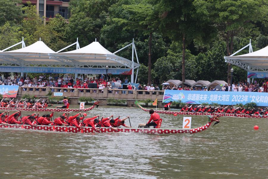 Shatian women's dragon boat team competes in a race in Dongguan, south China's Guangdong Province, June 10, 2023. (Xinhua)