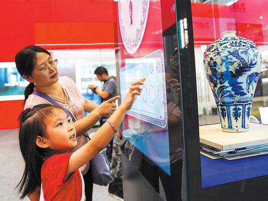 A girl and her mother experience an immersive interactive space at a museum exposition, which opened on Friday in Hohhot, capital of the Inner Mongolia autonomous region. The expo, which runs until Monday, features five themed sections. (WANG XIAOBO/FOR CHINA DAILY)