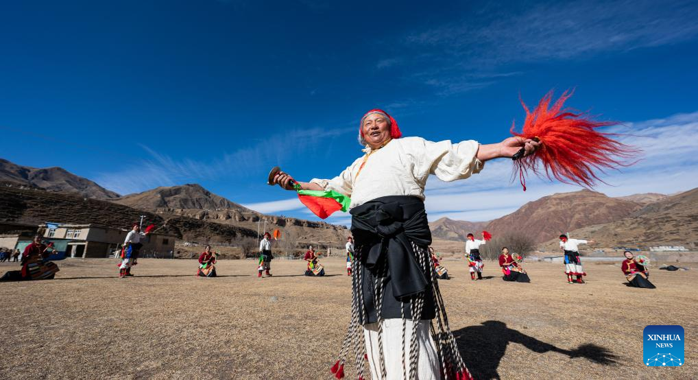 People perform Reba Dance in Chido Township, Dengqen County, Qamdo, southwest China's Xizang Autonomous Region, Jan. 5, 2025. (Xinhua/Tenzin Nyida)