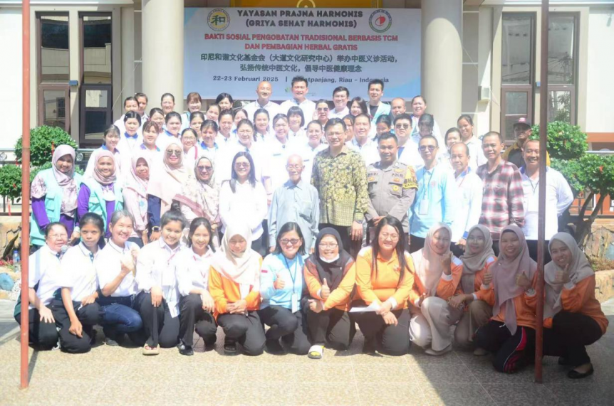 From February 22 to 23,2025, the Indonesian Harmony Culture Foundation (Indonesian Great Way Cultural Research Center-Confucius School) and Shandong University of Traditional Chinese Medicine jointly held a meaningful TCM free clinic in Silatang Town, Riau Province, Indonesia, to promote traditional TCM culture, advocate TCM health concept, and provide herbal medicine for local residents free of charge. The event, which aims to advance traditional Chinese medicine culture, alleviate the pain of local people and promote physical and mental health, attracted more than 500 people to participate actively and received wide praise. Representatives of the local health department, members of the local parliament, a number of community leaders and people from all walks of life attended the opening ceremony.