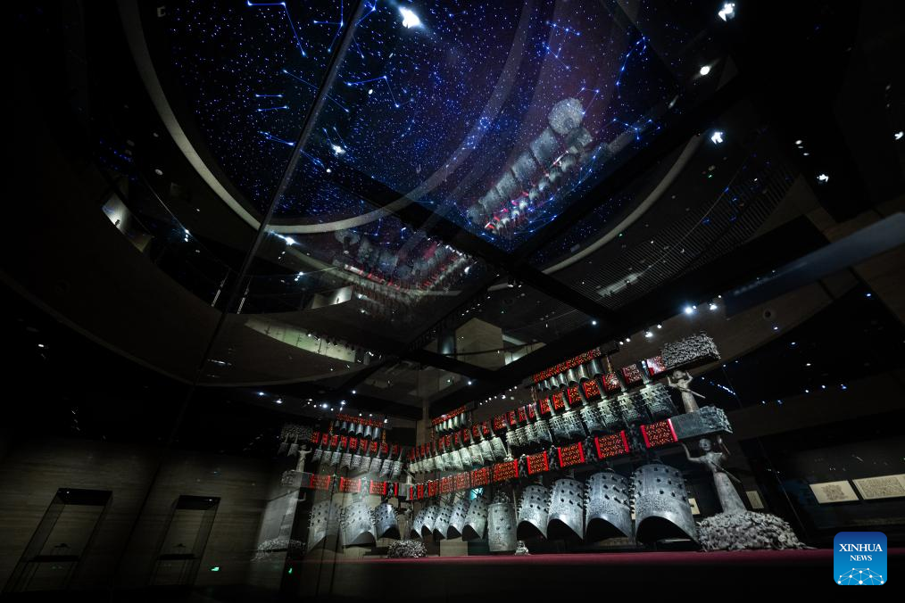 The Bianzhong of Marquis Yi of Zeng is pictured in Hubei Provincial Museum in Wuhan, central China's Hubei Province, April 17, 2025. Three documentary heritage collections submitted by China have been inscribed in the UNESCO Memory of the World Register, the United Nations Educational, Scientific and Cultural Organization announced on Thursday. Among the 74 newly added entries, China contributed two solo submissions - the Bianzhong of Marquis Yi of Zeng and the Steles of Shaolin Temple - as well as a joint submission with Sri Lanka: the Trilingual Inscription. (Xinhua/Xiao Yijiu)