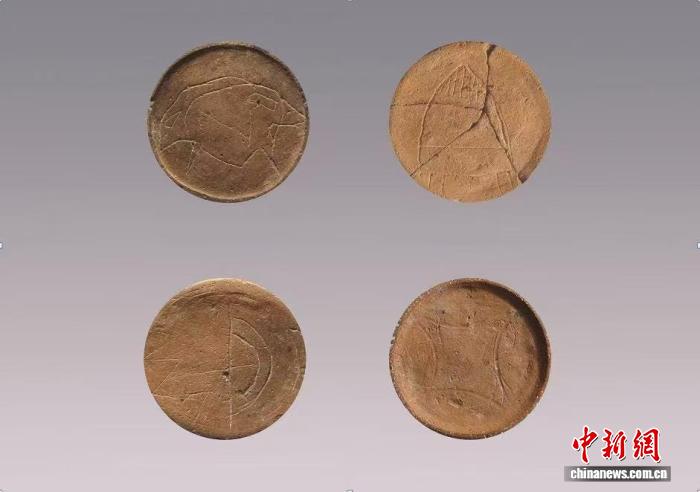 Photo shows symbols engraved on the pottery wares unearthed at the Shuangdun archaeological site in Shuangdun village, Huaishang district, Bengbu city, east China's Anhui Province. (Photo courtesy of the Shuangdun national archaeological site park)