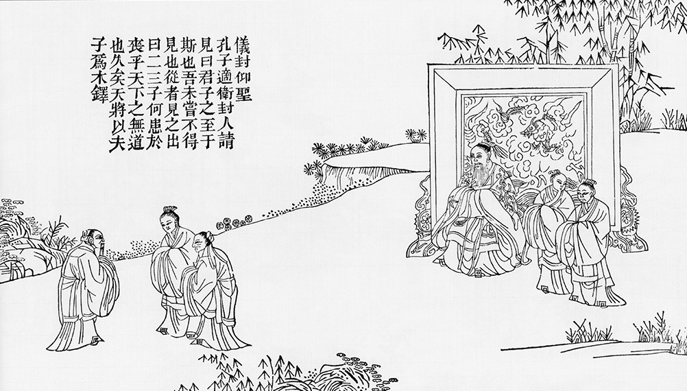 When Confucius came to Wei state, the governor of Yifeng County came to visit Confucius. He said, "I would pay a visit to every gentleman who come here." So, Confucius' disciple accompanied him to see Confucius. After seeing Confucius, he came out and said to Confucius' disciples, "Why are you distressed by your master's loss of office? The state has long been without the principles of truth and right. Heaven is going to send your master as a sage to enlighten the people."