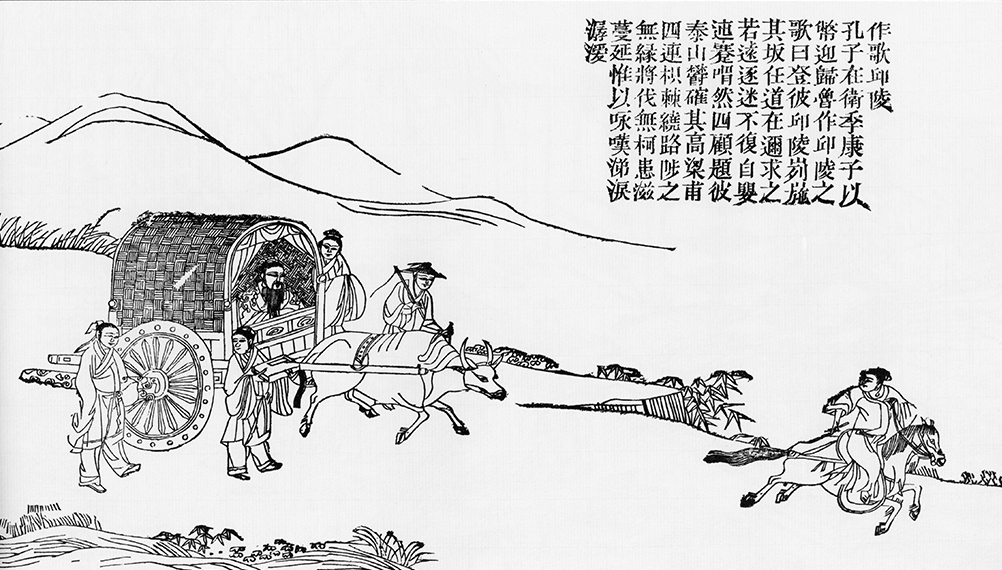 In the 11th year of the reign of Duke Ai of Lu state, Confucius was 68 years old and in Wei state. Lord Ji Kangzi, the ruling minister of Lu state, sent people with gifts to invite Confucius to return home. Confucius returned home and wrote a song of hills. The main idea of the song is as follows: The high hill that I climbed was with tortuous hillside. Benevolence seemed very close to catch, but it was far from being achieved. I didn't know how to walk on, and I was bound by difficulties and hardships. Looking back with a sigh, the Mount Tai towered into the clouds with lush trees, and Liangfu (a hill at the foot of Mount Tai) was connected with it. With the road full of thorns, I wanted to climb Mount Tai, but I couldn't make it. I wanted to cut the thorns but I didn't have an axe, and I feared that they will breed and spread. The only thing I could do was to sigh and shed my tears.