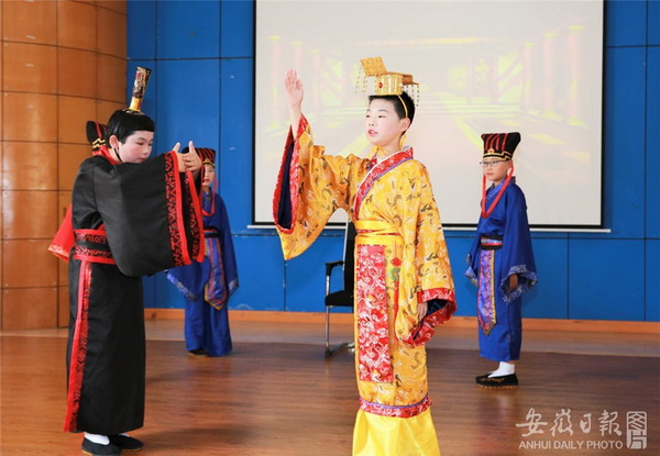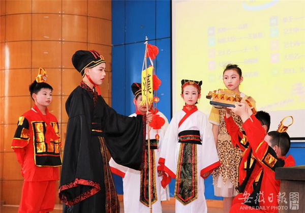 5月20日、東陵市の天家嶺小学校の古代詩朗読会で、子供たちが時代劇「張騫の西部特使」を上演していました。古典的な古代の詩を学ぶことへの子供たちの興味を刺激するために、学校は生徒が自分で舞台劇を書き、演出することを積極的に奨励し、さまざまな王朝の詩、エッセイ、歴史的な物語を結び付けて、生徒が楽しくて面白い雰囲気の中で暮らせるようにします。中国の伝統的な美徳と優れた文化の影響、歴史的な古典を見直し、文化的な意味合いを高めます。特派員パンウェイによる写真