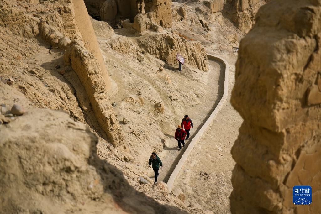 古格王国都城遺跡を見学する観光客(11月3日、撮影・曹檳)。