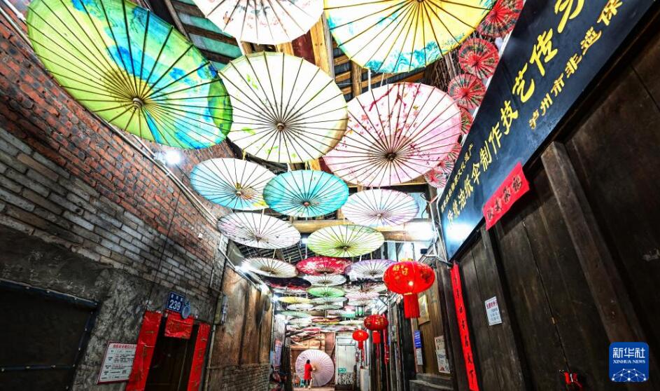 四川省瀘州市江陽区は、無形文化遺産の油紙傘(油紙を貼った唐傘)を人々の暮らしの中に融合させ、継承者に制作技術の改善を奨励する政策を出し、オンラインプラットフォームを利用して製品を国内外市場に出荷し、地元民の所得増加をけん引している。瀘州油紙傘の制作技術は、国家級無形文化遺産に指定されており、「中国民間傘工芸の生きた化石」と言われている。