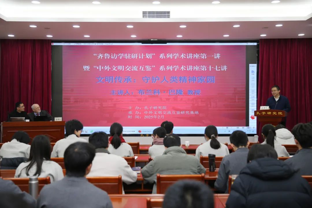 2月17日、「斉魯訪学駐研計画」シリーズ学術講座第1回及び「中外文明交流相互学習」シリーズ学術講座第17回が孔子研究院学術講堂で開催された。クロアチア―中国友好協会主席、クロアチア・ザグレブALGEBRA大学コンピュータ科学教授ブランコ・バロン(Branko Balon)氏は『文明伝承:人類の精神的な家を守る』と題して開講した。
