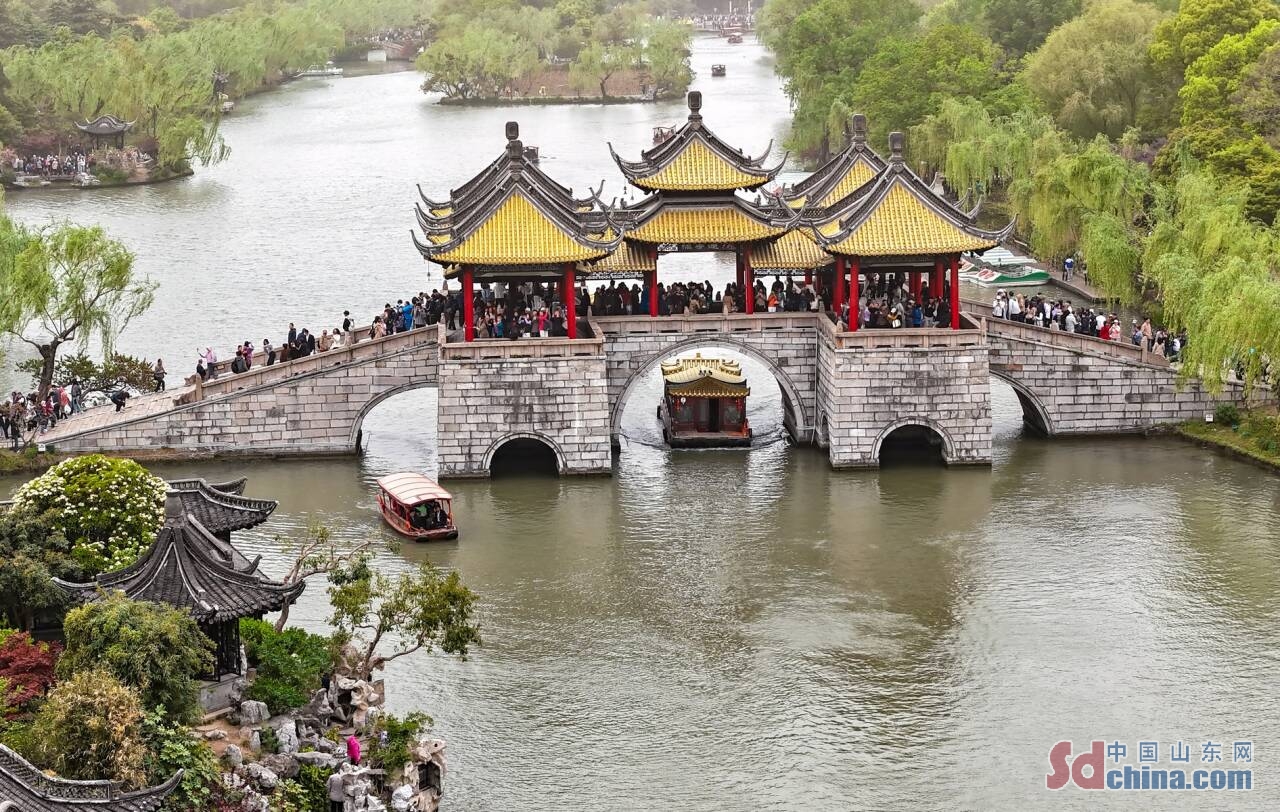 4월 12일, 장쑤(江蘇) 양저우(揚州) 서우시후(瘦西湖)의 봄빛은 사람을 취하게 하고, 맑은 물결이 구불구불하게 정대 수양버드나무를 비추며, 관광객들은 배를 띄우면서 경치를 감상한다. 최근 몇 년간 장쑤성 양저우시는 수자원보호, 수질환경정비, 수계연결과 녹화미화 등 방식을 통하여 살기 좋고, 일하기 좋고, 여행하기 좋은 환경을 지속적으로 만들어 인간과 자연의 조화와 공융을 촉진하고 있다.