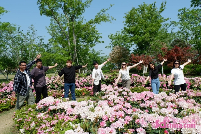 한국 아르헨티나 방글라데시 네팔 등 국가부터 온 7명 외국인 유학생은 ‘호객산둥 호품산둥(好客山東 好品山東) I love you’외국인 유학생 체험 활동에 참가해, 르자오시 진달래 박람원에 들어갔다.