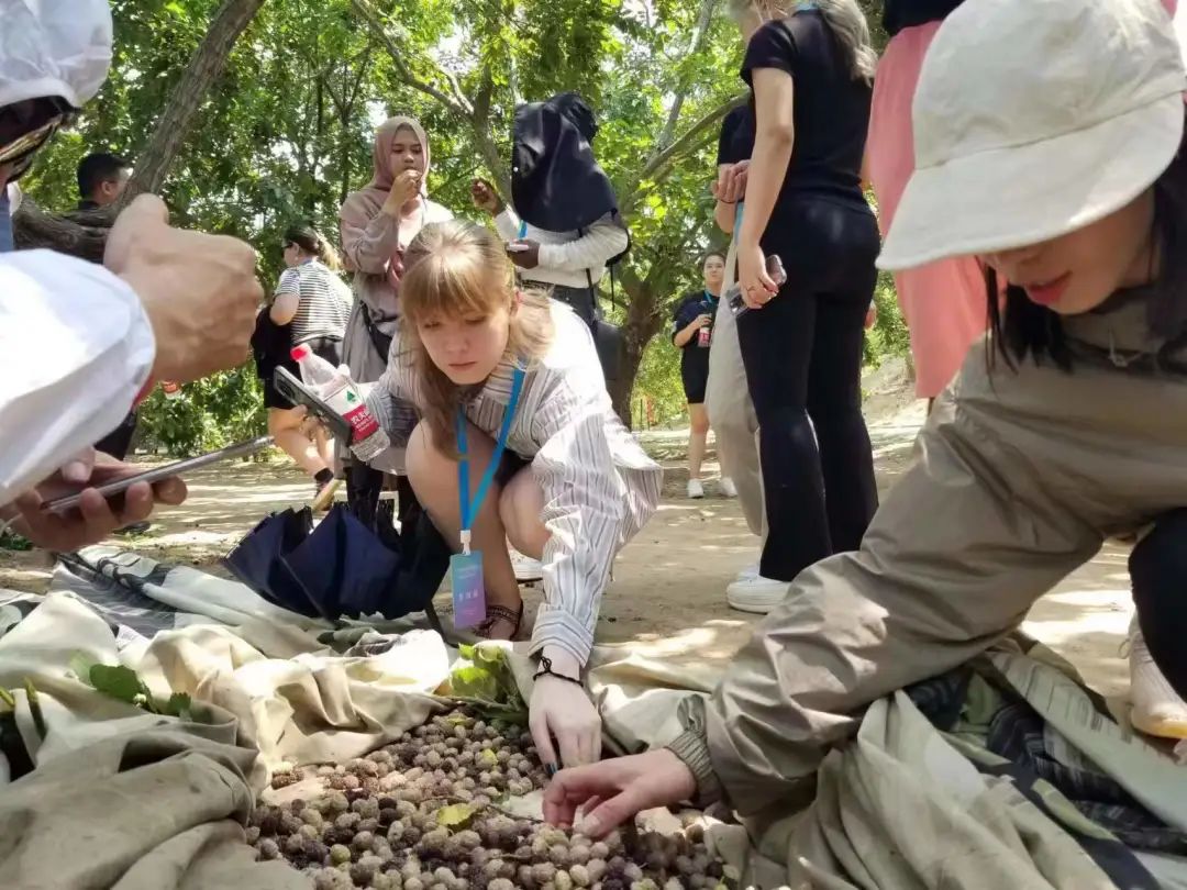 신맛과 매운 맛을 맛본 후 방문단은 ‘중국 오디의 고향’인 샤진(夏津)현으로 달콤한 여행을 떠났다. 샤진현의 뽕나무 재배는 오랜 역사와 거대한 규모로 자랑하고 있고 가장 번성한 시기에 8만 묘에 달했으며 오늘날에도 세계에서 가장 큰 면적과 가장 오랫된 수령(樹齡, 나무의 나이)으로 손꼽히는 고대 뽕나무 숲이 여전히 보존되어 있다. 예를 들어, 샤진 황하고도 삼림공원인 이수원(頤壽園)은 황하고도의 고대 뽕나무 군락 농업문화유산의 집중체험지역이자 핵심지역으로 면적은 1000묘에 달하며 100년 이상 된 고대 뽕나무가 20000여 그루가있다. 여기서 고목 감상, 오디 따기, 과일 맛보기 등을 할 수 있다.