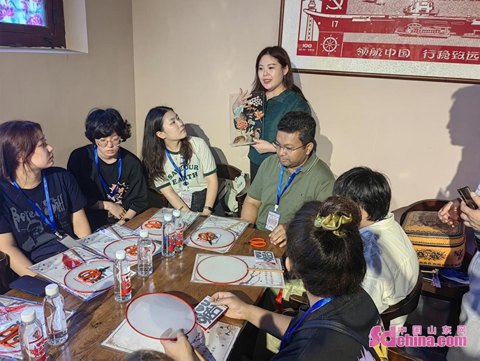 7월 13일 오후, 러시아, 한국, 프랑스, 파키스탄 등 7개국에서 온 외국인 20명이 옌타이(煙台)시 즈푸(芝罘)구 숴청리(所城裡)에서 비물질문화유산 체험을 시작했다.