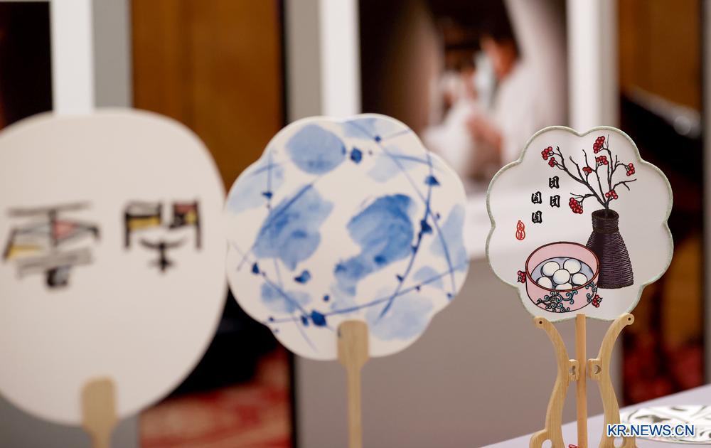 17일(현지시간) 징더전(景德鎮) 문화관광 홍보 행사에 전시된 중추절 테마 공예품을 영국 런던에서 촬영했다.