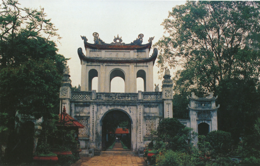 베트남 최초의 국학대학인 공자를 존경하고 유교를 송상하는 상징으로써 하노이(河内)에서 거의 모든 사람들이 문묘를 알고 있다. 1070년 베트남 이씨 왕조 황제 이성종(李聖宗)은 승룡성의 남쪽에 문묘를 짓기로 한다. 주공과 공자, 그리고 사배와 72현인을 모시는 동시에 황친국척의 자손들을 공부하게 하였다. 처음부터 문묘는 국학당 기능을 겸하고 있었다. 문묘는 하노이의 대표적인 건축물로 전형적인 중국식 건축물이고 국내 여러 곳 있는 문묘와 비슷한다. 지금 보유하는 건물은 대부분 17세기 이나라 때 지어진 것이며, 부지 면적은 약 26,000㎡이고 남쪽을 향하고 있다.건물 전체는 5개의 마당으로 이루어져 있고 문 밖에 하마비가 세워져 있는데 문묘문은 전형적인 동양 사찰 양식이다. 대배당 한 가운데에는 '만세사표(萬世師表)'라고 쓰인 한자 현판이 '강희어서(康熙御書)'라고 적혀 있다. 정전에는 공자 동상이 있고 양쪽에 중국과 베트남의 유학 대사들을 모시고 있다. 다른 곳과 다른 점은 공자와 사배(四配)의 두루마기가 모두 명나라 양식으로 되어 있어 명나라 때 베트남 유학이 절정에 달했음을 반영한다.그 중 대성문, 대성전, 규문각에는 여러 대련이 있어 공자와 유학에 대한 존경도 표현하고 있다. 톈광징(天光井)동서 양쪽에 배열하는 82개의 진사(进士)비석을 통해 시안비림의 풍격도 살짝 볼 수 있다.