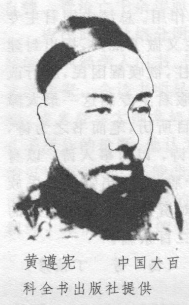 (1848~1905) 清末学者。字公度,别号人境庐主人。广东嘉应州(今梅县)人。同治举人。光绪三年(1877),任驻日本公使馆参赞,随何如璋乘槎东渡。他向日本友人介绍中国文化,同时了解日本当代文学和历史著作情况,悉心研究明治维新的历史,着手撰写《日本国志》。在赴日游历的王韬影响、启迪下,逐步走上改良主义道路。1882年,调任驻美国旧金山总领事,曾尽力保护华侨和华工的正当权益。1890年任驻英二等参赞。1891年,任新加坡总领事。到任伊始,倡立图南文社,“讲论道德,兼及中西之治法,古今之学术”,培养资产阶级改良运动的人材。巡视各岛,了解华侨情况,指出华侨大都爱国,反对清政府歧视归侨,力争清政府颁布保护归侨的几条规定,创立“护照”制度,保护华侨利益。1894年,应张之洞电召回国,任江宁洋务局总办,负责处理江南、江西、浙江、湖南、湖北五省堆积的“教案”。《马关条约》签订后,他深忧国家被瓜分的命运,关切反抗日本侵略的台湾同胞,强调台湾自古就是中国的领士。1896年,出资参与创办《时务报》,以救亡图存为己志。1897年,由翁同龢推荐,出任湖南长宝盐法道,代理湖南按察使,协助湖南巡抚陈宝箴推行新政。曾延梁启超主持湖南时务学堂,积极参加南学会的活动,主讲政教,倡议设学校、筹水利、兴商业、劝工业,谋求中国的独立富强。1898年8月,任命出使日本,但因病未能就道。戊戌政变时,因参与维新变法运动遭弹劾,在上海被扣留。后因英、日等国的干预,被允许回乡闲居,但仍念念不忘国家、民族的存亡。晚年思想又有所发展,迸发出资产阶级民主思想的火花。