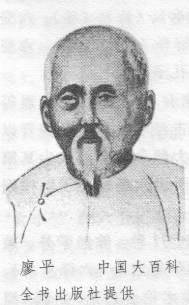 廖平幼年家贫,苦读成才。23岁时参加院试,学政张之洞从落卷中发现其才能,拔置第一,为秀才。翌年(1875),张氏于成都建尊经书院,廖平从1876年起肄业其中,直至1881年。入院后始治训诂文字之学。1879年初,王闿运至院主讲,从之治《公羊》《榖梁》。1879年乡试中举人。1889年会试得中,赐进士出身,任命为四川龙安府教授。此后,长期在四川教育界任教。民国三年至十一年间(1914~1922)曾出任国学学校校长(1918年起易名为四川国学专门学校),并先后兼任华西大学、成都高等师范学校等校教授。