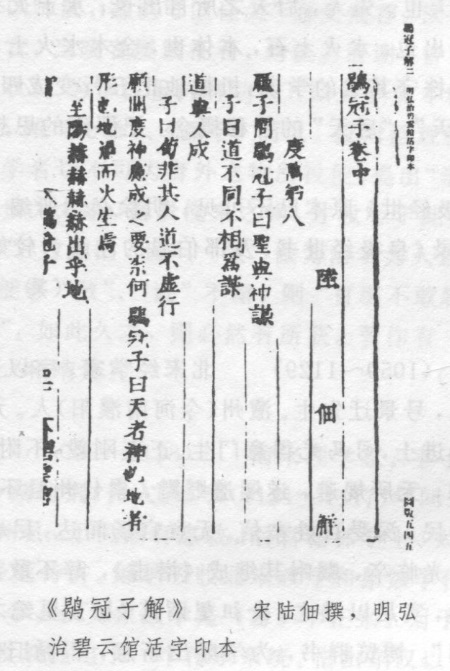 (1042~1102) 北宋思想家。字农师,号陶山,山阴(今浙江绍兴)人。熙宁三年(1070)进士,历任中书舍人给事中、礼部侍郎、尚书左丞等职,后卒于亳州任上。家贫寒,遂立志苦学,不远千里受学于王安石,接受其经学思想,跟从前后20余年。自谓常与王安石“语器言道,朝虚而往,暮实而归”,收益颇丰,甚而认为平常10余年所学所得,竟不如随王氏一日所得。后王安石历行新政,咨之以新法,又会同诸班儒生共同参加“三经义”的修撰工作,又与王子韶修定《说文》。对于古礼名数之学尤为精通,每有所为,均以礼对答,宋神宗认为“自王、郑以来,言礼未有如佃者”。陆佃知识渊博,且重视实践活动,在博览群书的同时,还对于社会各行各业的技艺都细心留意,详加询问,然后亲身体会,随时记录,以为验证。著有《尔雅新义》《礼象》《春秋后传》《鶡冠子解》(见图)、《陶山集》等书。其中《尔雅新义》中颇多作者新解,对当时流行的《尔雅》注疏本的错误亦有所订正。