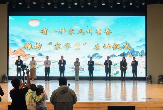 4月23日,潍坊家庭文化研究会联合有关部门共同举办“潍有书香”经典诵读会暨“家学堂”启动仪式。