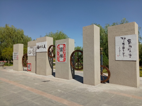 崇学广场之“崇学”意即崇尚学习,古圣先贤不分派别,不论先后都对“学”推崇备至。先秦儒学大师荀子《荀子·劝学》有言曰:“学不可以已,”大成至圣孔子《论语·学而》亦曰:“学而时习之,不亦说乎?”