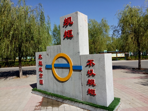 “崇学广场”与楼北“厚德广场”遥相呼应,相得益彰,体现了托克托一中“崇学尚德”的治校品格。