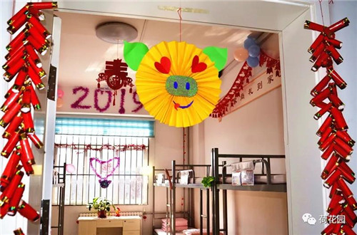 经过警察和戒毒人员齐心协力、精心设计,节日期间的戒治大院内外装扮一新——色彩斑斓的“吉祥轮”布满整个走廊,班组内和走廊上挂满红灯笼、中国结和彩灯,处处张贴春联、新春寄语和猪年主题饰画等,营造出浓浓的喜庆、祥和、温馨的文化戒治氛围,也描绘出戒毒人员坚定的戒治信念和对美好未来的憧憬。