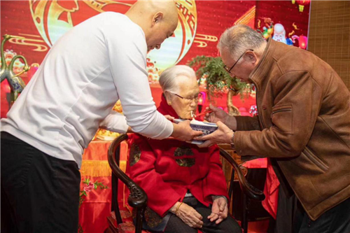 百岁老寿星辛苦劳作一生,她15岁就参加工作,先后培养7位儿女成才,整个家族已形成拥有40多人口“四世同堂”的大家庭。整个大家庭处处充满着爱,这无不体现出仁者爱人的思想,可以说“孝”是“仁”之本,仁是儒家思想中的核心。仁是儒家思想的基石和最高范畴,蕴含着人类最普遍的思想情感和最基本的道德原则。儒家之所以重视孝的观念,是因为孝的血缘亲情具有坚实的社会基础和长久的生命底蕴。作为人生追求的最高境界、社会发展的理想状态的仁,必须找到一个切入点予以实践,孝正好成为仁的切入点。通过孔子儒家传统寿礼让老人们幸福快乐,祝愿老年人延年益寿,同时,后辈们也通过这种传统文化的形式向老一辈表达自己的孝心。