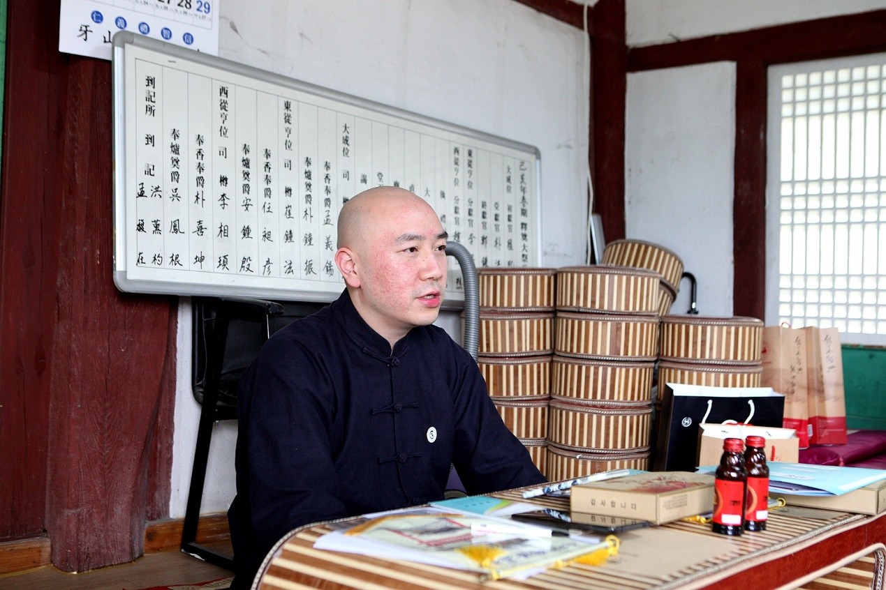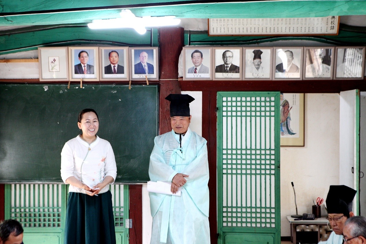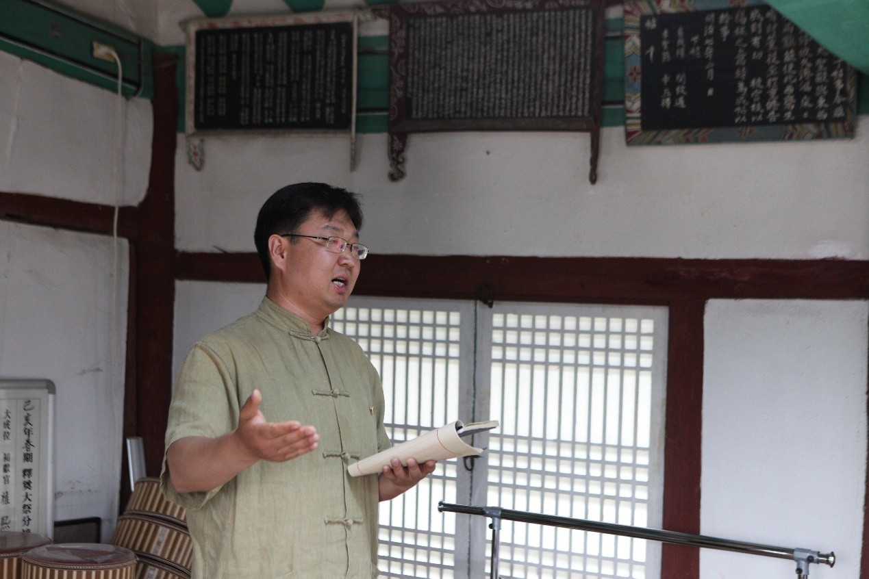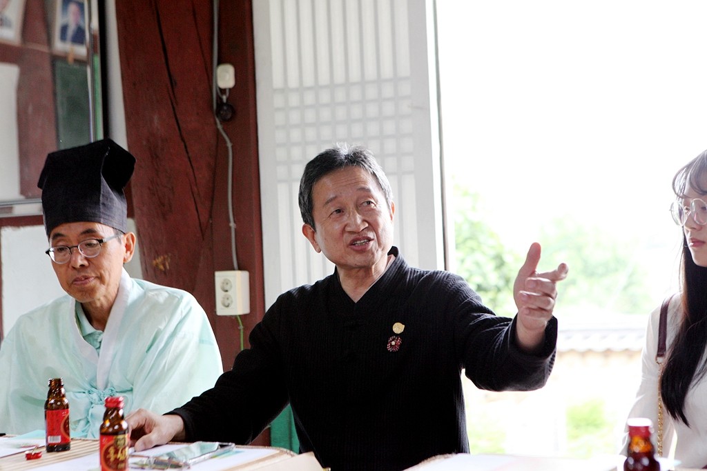 温阳乡校名誉院长、成均馆元老李兴馥向客人介绍情况