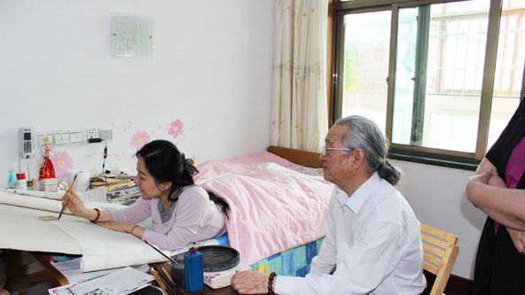 著名书法家张荣庆先生赶往诸城看望刘晓清。鉴于晓清身体原因,张荣庆先生建议她多在小字上努力。