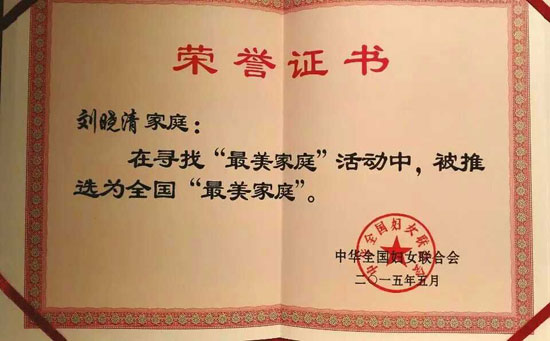 2015年5月14日,全国妇联在北京人民大会堂举行“全国最美家庭”揭晓仪式,100个“全国最美家庭”代表出席盛典,诸城刘晓清一家被评为“全国最美家庭”,是潍坊唯一入选的家庭。5月17日,记者联系到了刚从北京领奖回来的刘晓清及其家人,感受到了这个家庭令人起敬的“坚强之美”。