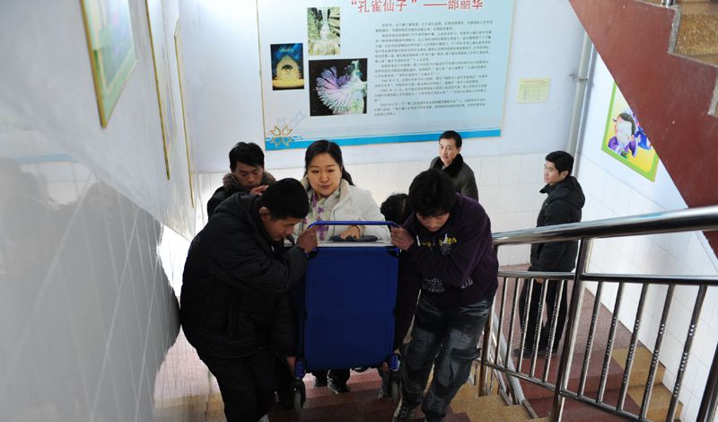 课前课后,老师和孩子们都会很开心地抬“轮椅姐姐”上下台阶。