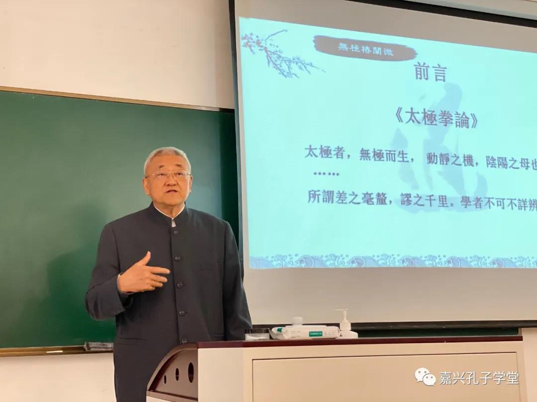 11月30日下午,一堂主题为《无极桩》的传统太极拳理论课在同济大学浙江学院报告厅举行。本次课程由中国孔子基金会文化大使、中国武术八段、嘉兴孔子学堂推广指导委员会名誉主任蔡光復先生主讲。