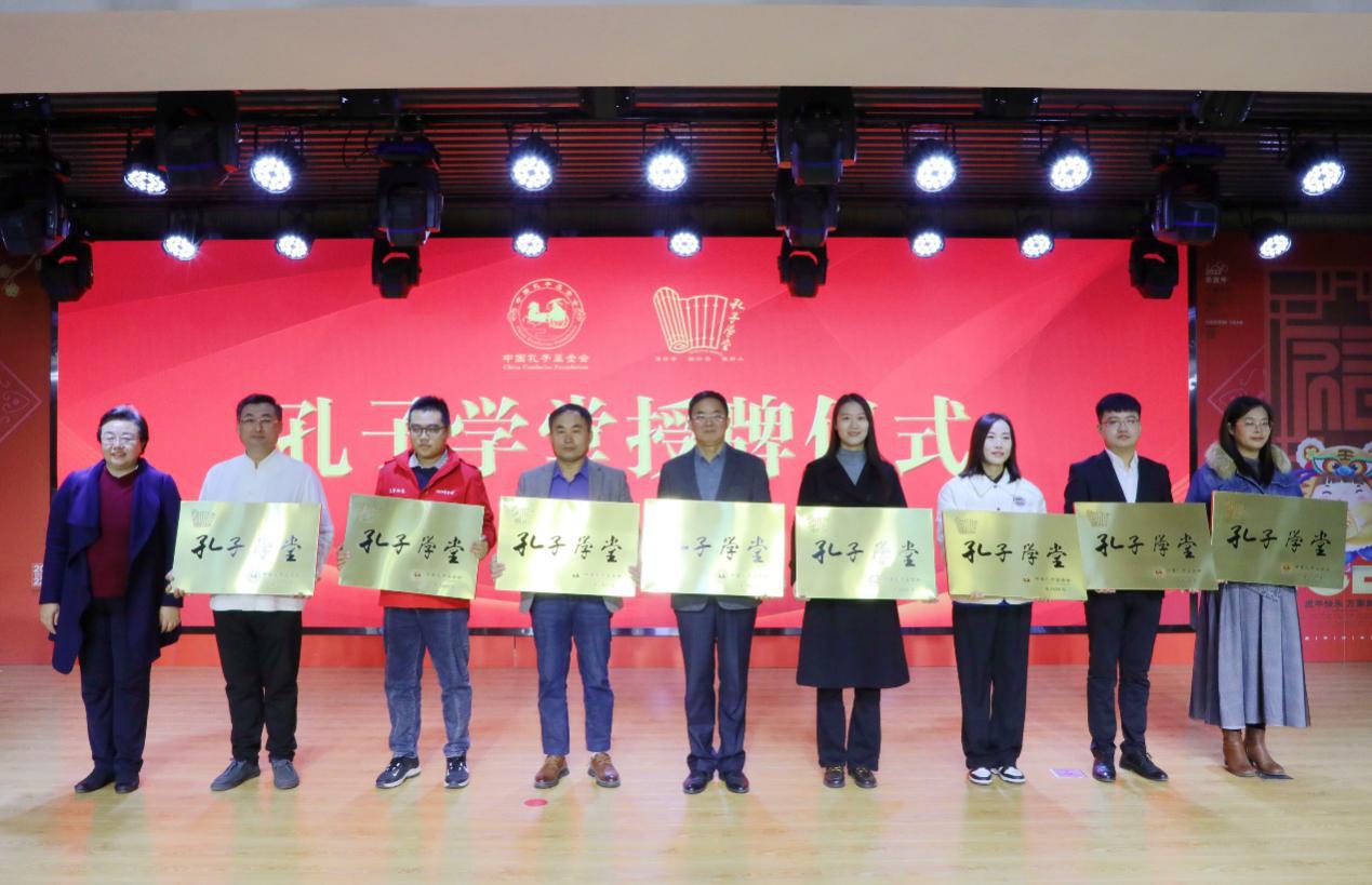 在当天举办的开营仪式现场,尼山世界儒学中心(中国孔子基金会秘书处)党委委员、副秘书长,中国孔子基金会孔子学堂推进委员会主任周静,济阳区委副书记张鹏分别致辞。周静代表孔子学堂万里行公益项目接受山东孟洛川信息科技有限公司董事长孟庆刚的物资捐赠,并为济南统一企业有限公司、山东金晔农法食品有限公司、山东孟洛川信息科技有限公司等8家新批复的孔子学堂授牌。山东师范大学侨联常务副主席、外国语学院原党委书记吕志红,旺旺山东总厂总厂长周建新,分别代表孔子学堂万里行志愿者、研修营学员发表了感言。