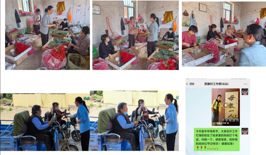第一书记购买了上百朵康乃馨,到田间地头、村手工艺品加工厂、村小广场宣讲,并为每位母亲送上一朵康乃馨,向她们致以节日的祝福。第一书记给大家讲述了中华母亲节的来历,结合孟母教子、孟母三迁等传统文化小故事,向大家普及推广中华优秀传统文化,与大家交流家风、家教、家庭生活。第一书记还在村微信群里向在外人士发出倡议,请他们常给家里的母亲打个电话、常回家看看。