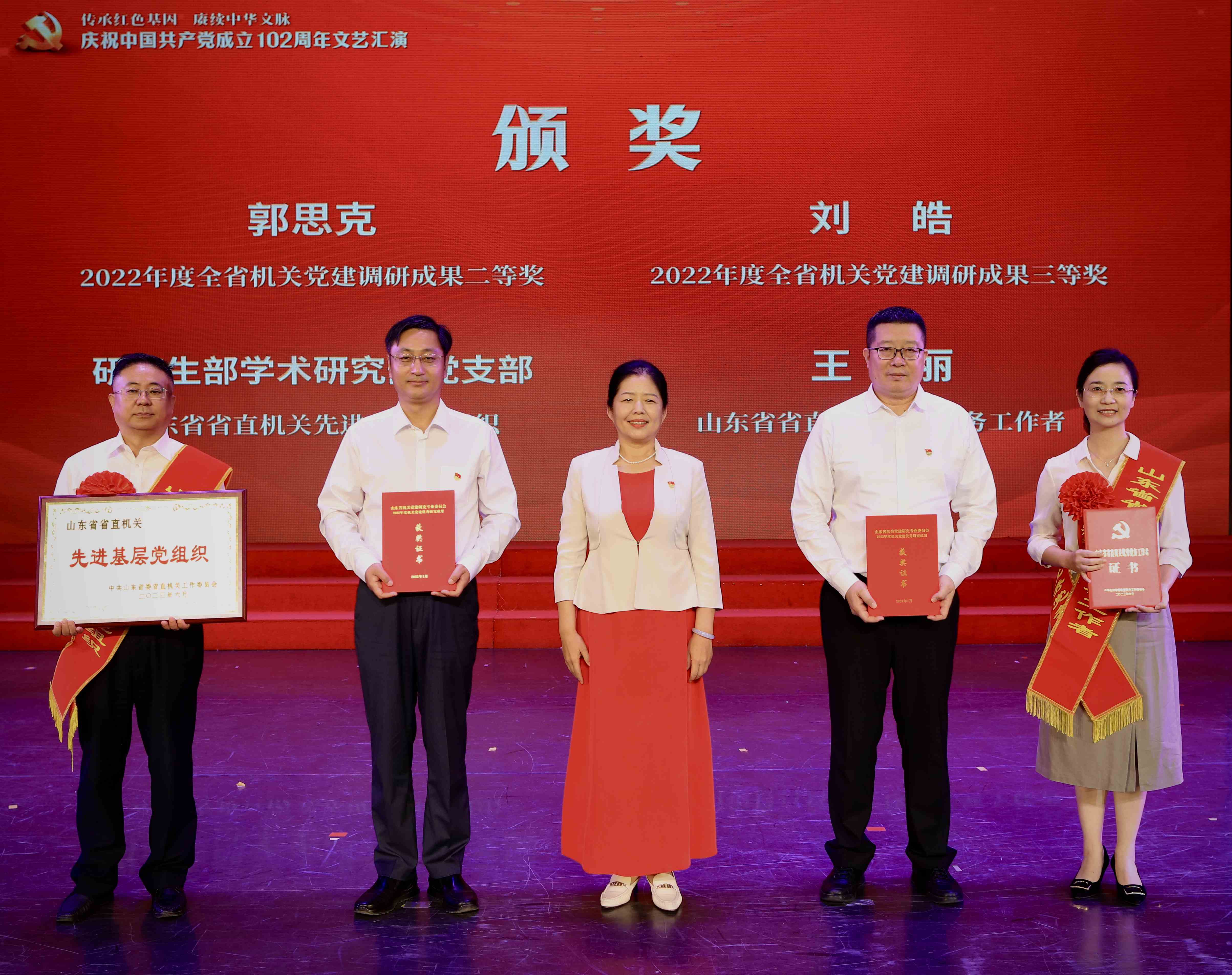 近日,中共山东省委省直机关工作委员会发布《关于表彰山东省省直机关优秀共产党员、优秀党务工作者和先进基层党组织的通报》,研究生部学术研究部党支部被授予“山东省省直机关先进基层党组织”称号,王丽同志被授予“山东省省直机关优秀党务工作者”称号。