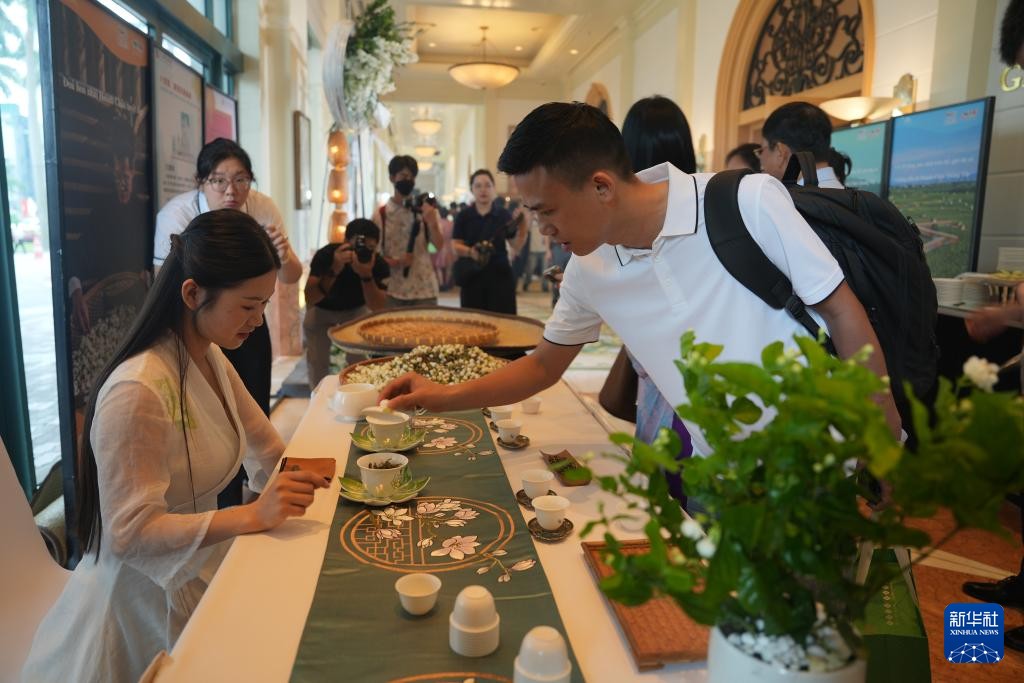 正值“国际茶日”,“茶和天下·雅集”暨胡志明足迹中越友谊广西红色旅游线路推介活动21日在越南首都河内举办,以茶为媒促进文明交流互鉴,传承中越传统友谊,深化桂越人文交流与旅游合作。新华社记者 胡佳丽 摄