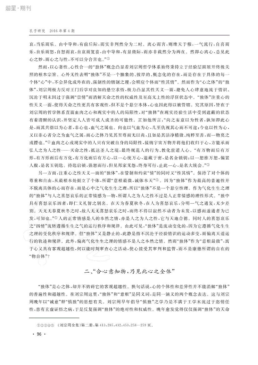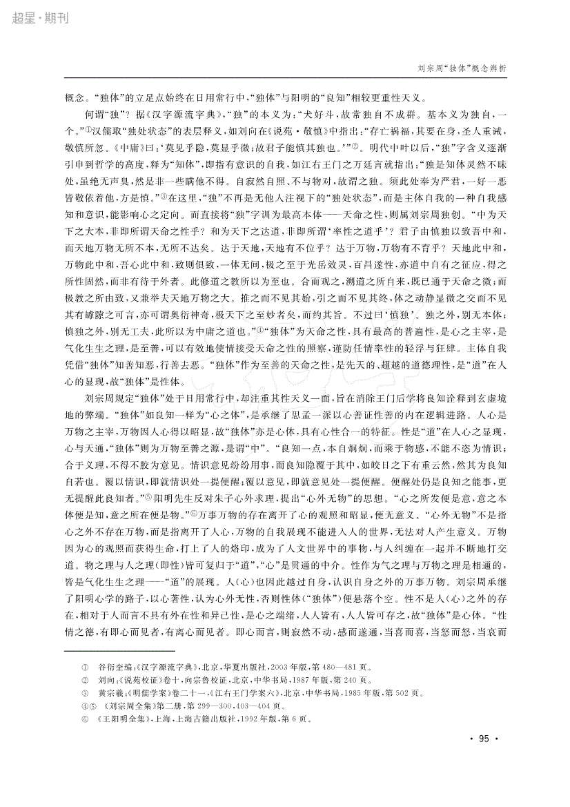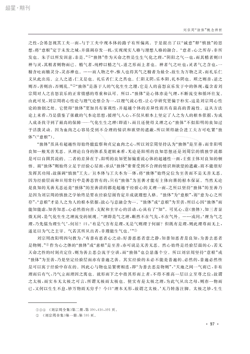 刘宗周“独体”概念辨析
