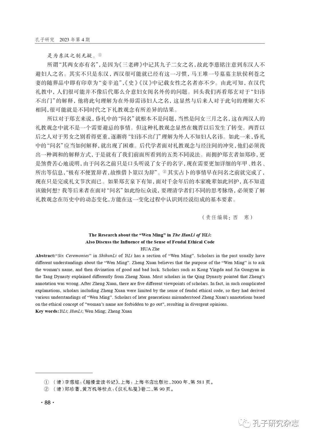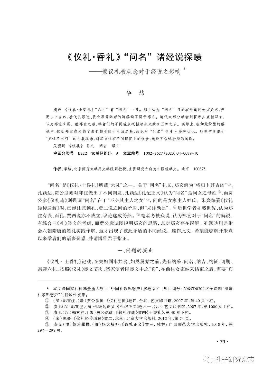 华喆:《仪礼·昏礼》“问名”诸经说探赜——兼议礼教观念对于经说之影响