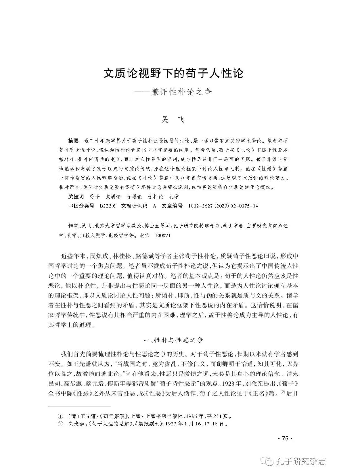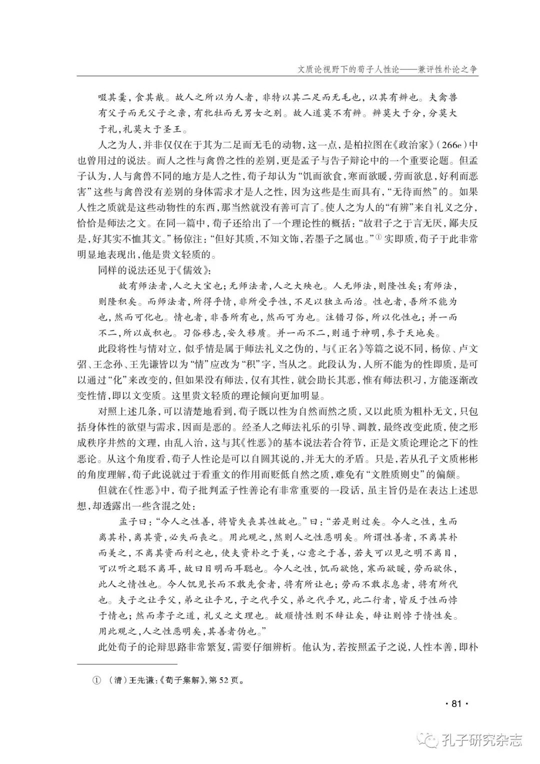 吴飞:文质论视野下的荀子人性论——兼评性朴论之争