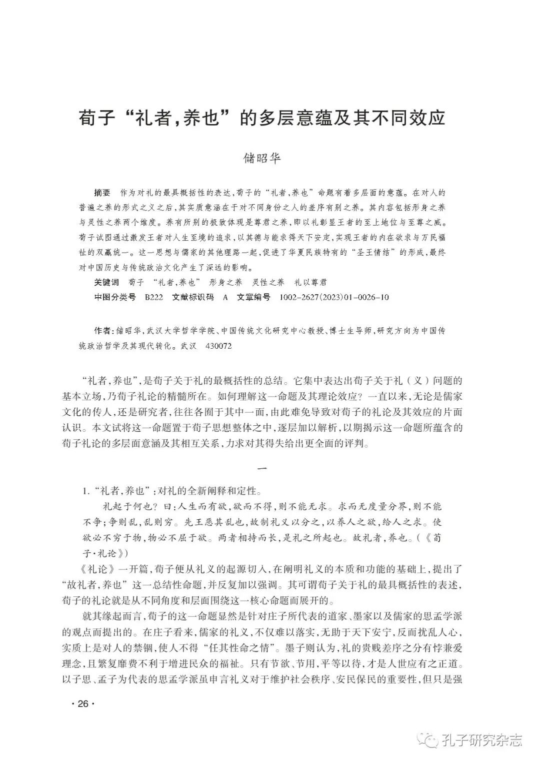 储昭华:荀子论“礼者,养也”的多层意蕴及其不同效应