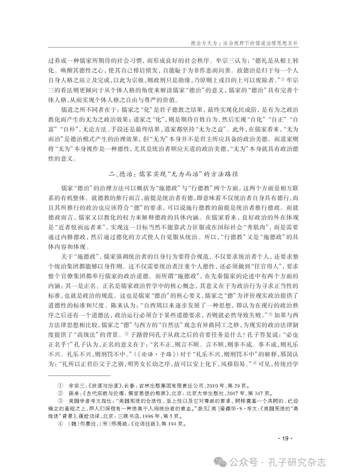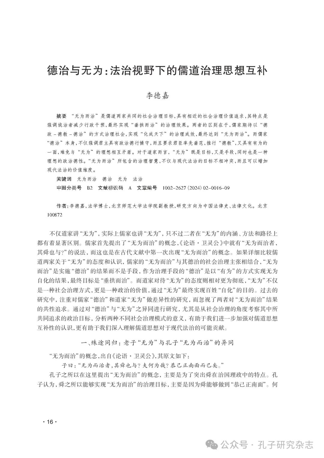 李德嘉:德治与无为:法治视野下的儒道治理思想互补